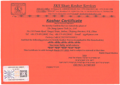 公司被評為“國家高新技術(shù)企業(yè)”,并有多個產(chǎn)品獲得“國內(nèi)發(fā)明專利”,通過了FSSC22000食品安全體系認(rèn)證,ISO14001環(huán)境管理體系,MUI HALAL認(rèn)證,SKS KOSHER認(rèn)證,ISO9001質(zhì)量管理體系和ISO22000食品安全管理體系認(rèn)證,并有多個產(chǎn)品通過了“歐洲REACH法規(guī)”注冊和“韓國REACH法規(guī)” 預(yù)注冊。